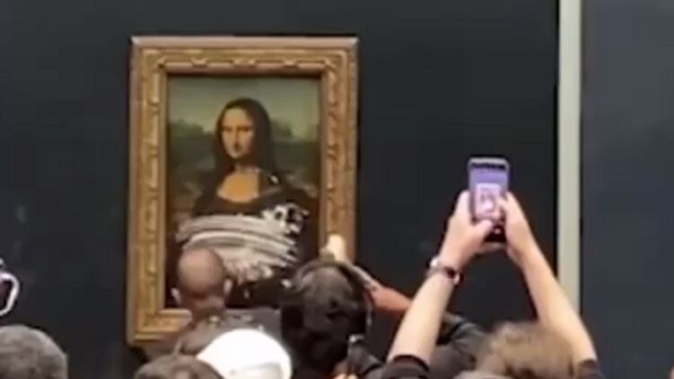Посетитель Лувра измазал тортом защитное стекло перед картиной Леонардо да Винчи "Мона Лиза" и призвал окружающих задуматься о будущем нашей планеты.
