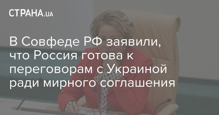 Спикер Совета Федерации РФ Валентина Матвиенко заявила, что Россия готова к переговорам с Украиной ради мирного соглашения.