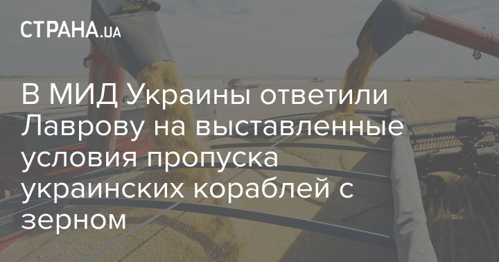 В МИД Украины ответили на требование главы МИД РФ Сергея Лаврова о разминировании украинских портов для начала выхода судов с зерном.