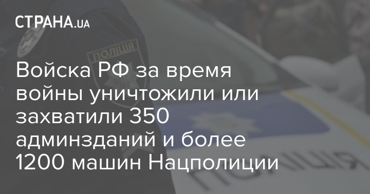 Войска РФ за время войны уничтожили или захватили 350 зданий и более 1200 машин Национальной полиции Украины.