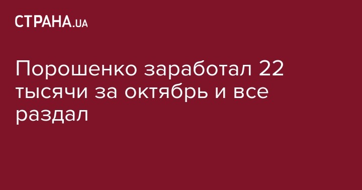 В октябре зарплата президента составила 22,5 тыс. гривен, которые он перечислил на благотворительность. Об этом сообщают "Украинские Новости".