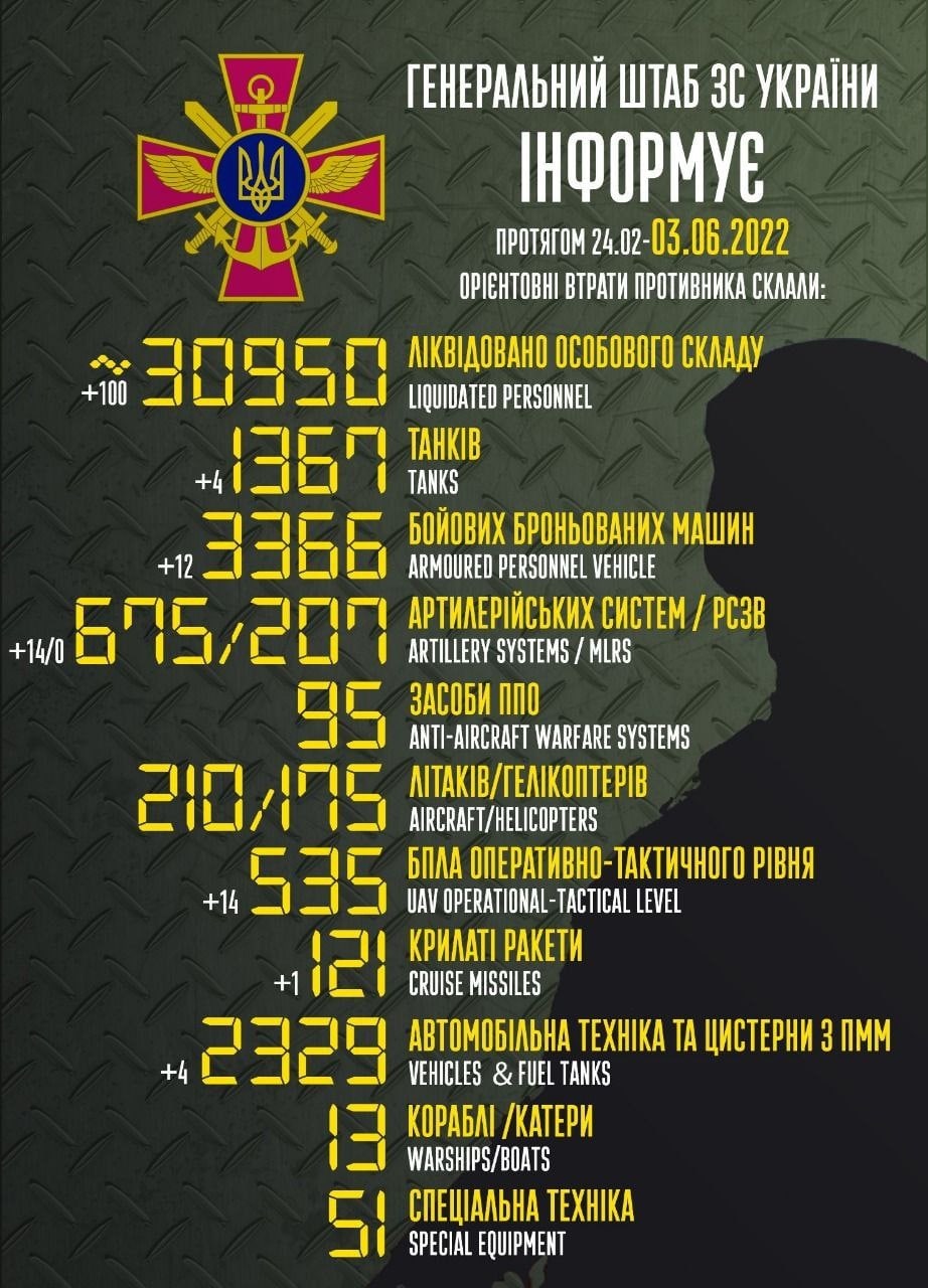 09:58 Генштаб ВСУ публикует данные о потерях противника на 3 июня: