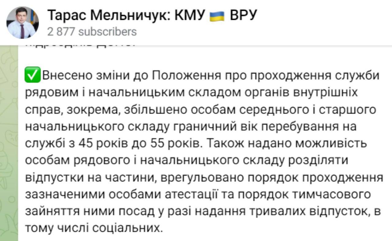 19.58 Кабмин повысил предельный возраст пребывания на службе в органах МВД для среднего и старшего начальствующего состава с 45 до 55 лет.