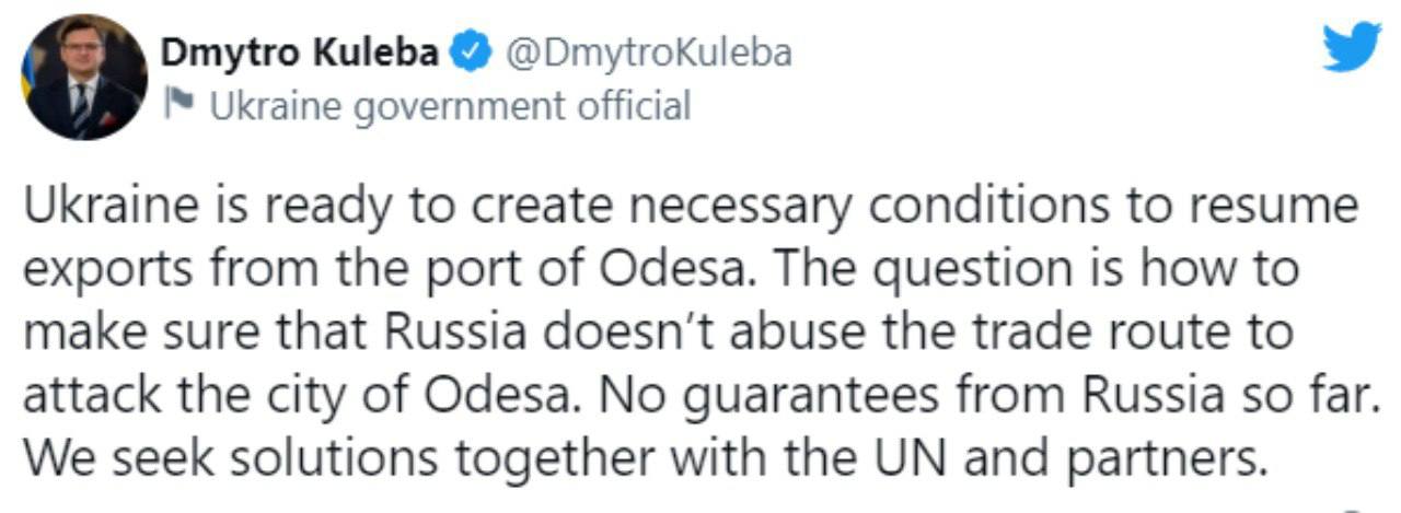 Об этом министр иностранных дел Украины Дмитрий Кулеба написал в Твиттере.