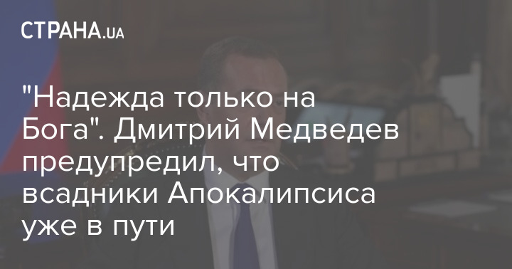 "Всадники Апокалипсиса уже в пути, и вся надежда только на Господа Бога, на Всевышнего", - подчеркнул Дмитрий Медведев.