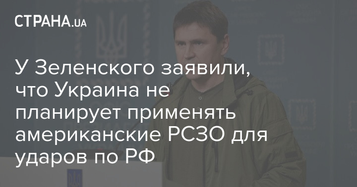 Советник главы ОП Михаил Подоляк заявил, что Украина не планирует применять ракетные системы залпового огня (РСЗО) для ударов по территории России.