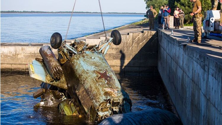 Со дна Киевского водохранилища подняли второй сбитый российский вертолет. Фото