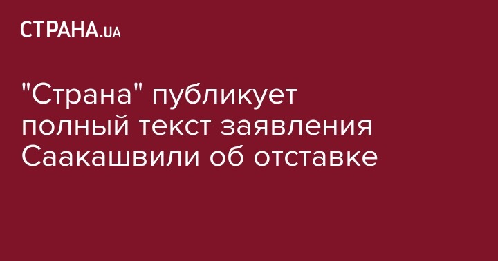 "Страна" публикует полный текст заявления Саакашвили об отставке