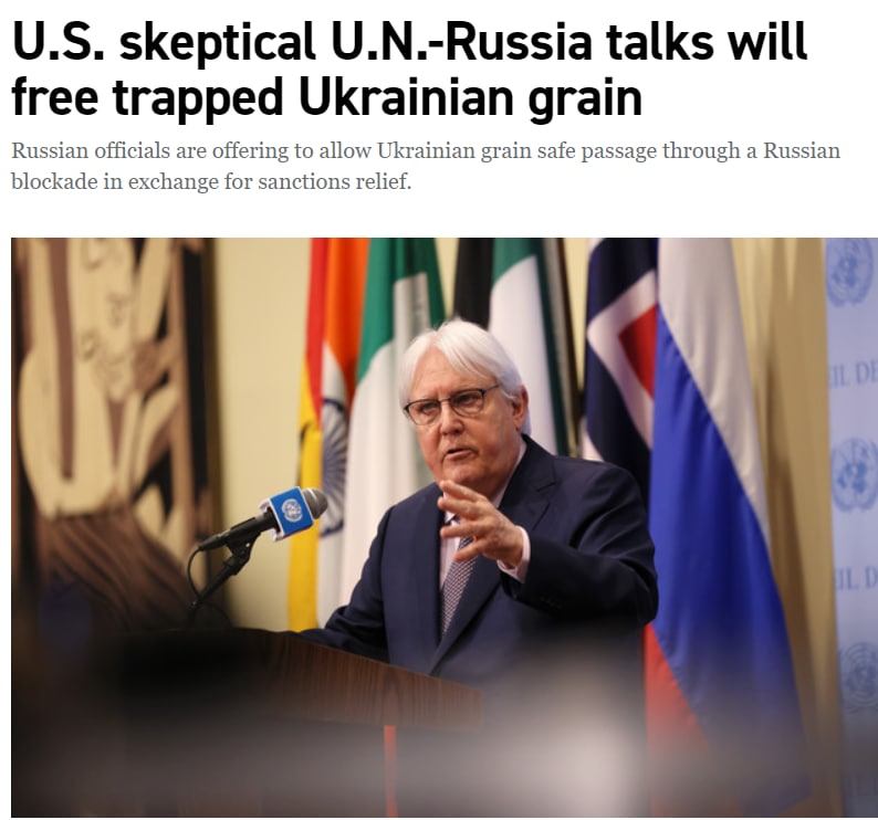 Собеседник Politico из ООН сообщил, что увязывание экспорта зерна со снятием санкций осложняет и без того "хрупкий" процесс переговоров с Москвой.