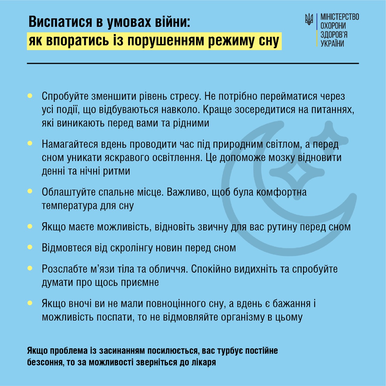Минздрав делится советами, как справиться с нарушением режима сна, чтобы нормально высыпаться в условиях войны.