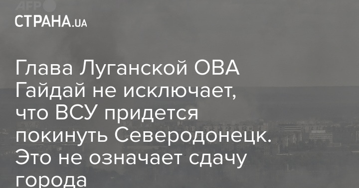 Глава Луганской ОВА Гайдай не исключает, что ВСУ придется покинуть Северодонецк. Это не означает сдачу города