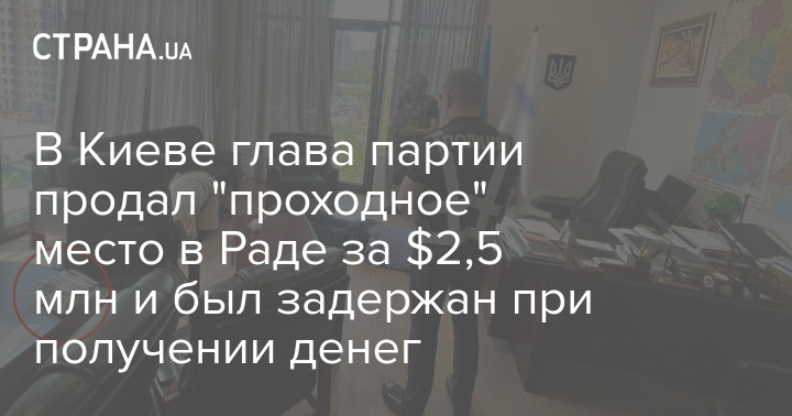 В Киеве задержали главу политической партии и руководителя ее территориальной ячейки за продажу "проходного" места в парламент за 2,5 миллиона долларов.