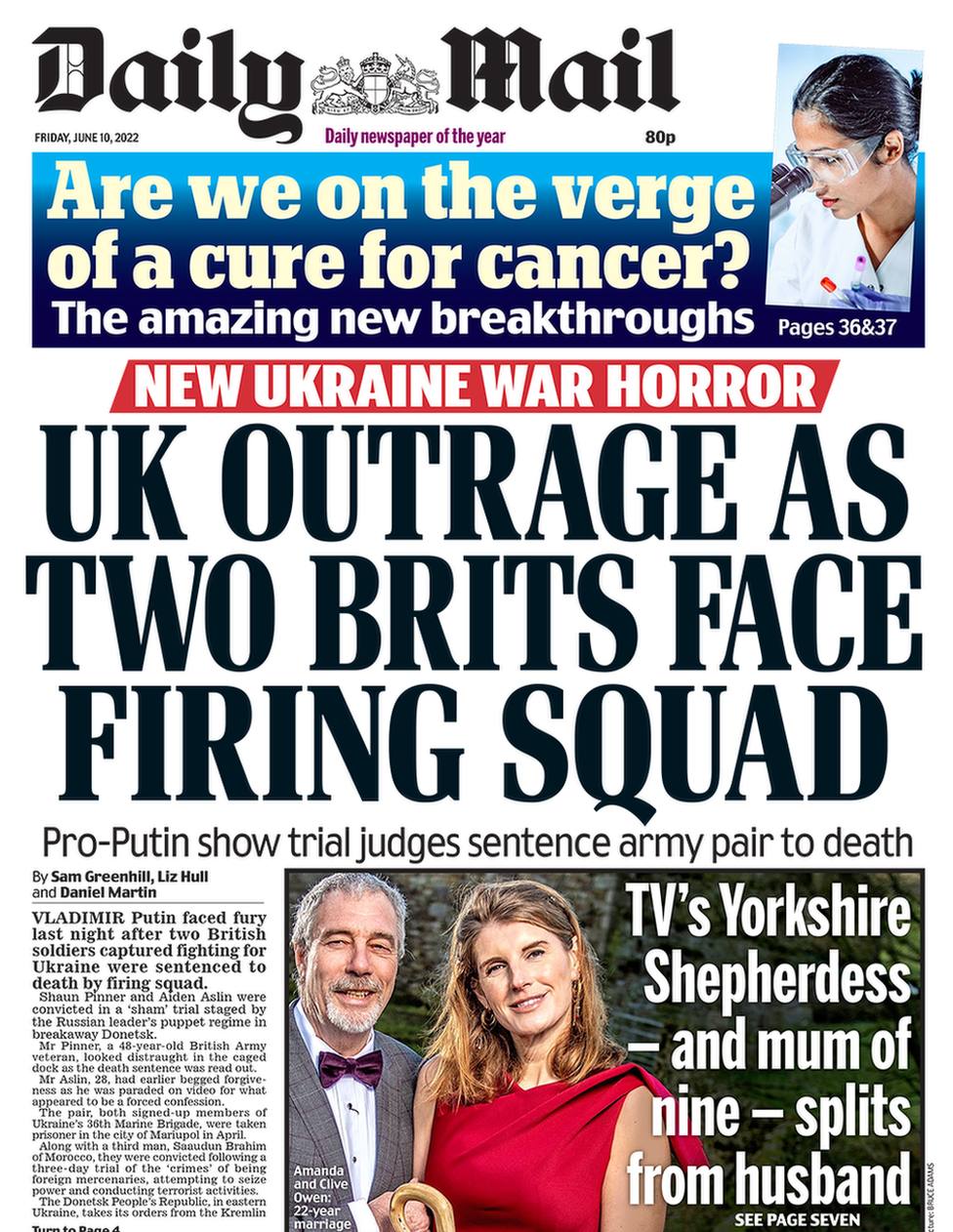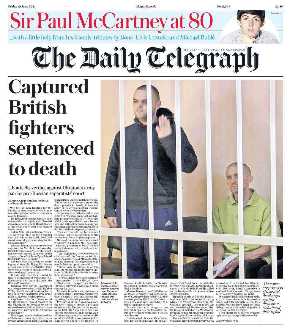 08:17 Смертный приговор двум британцам в "ДНР" - тема №1 английских газет этим утром.