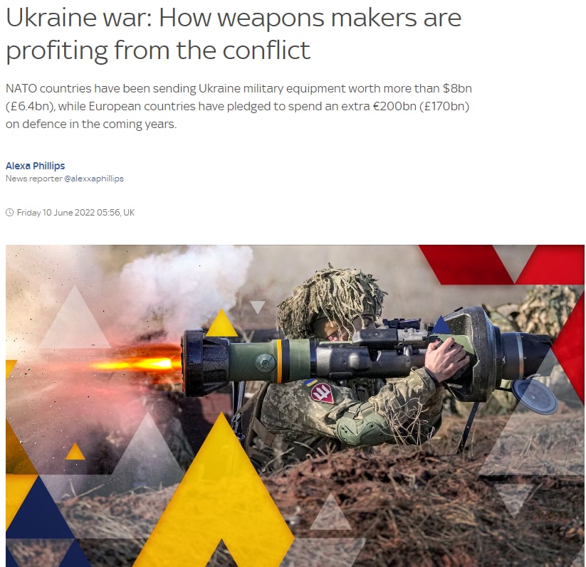 08:40 Телеканал Sky News рассказал, "как производители оружия наживаются на конфликте" в Украине (так звучит заголовок материала).