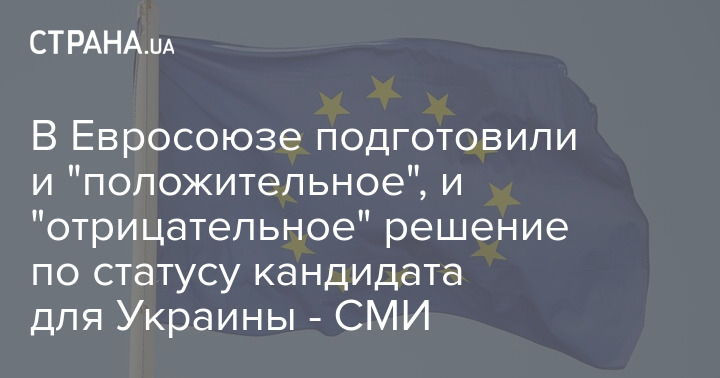 В ЕС подготовили два решения о статусе кандидата в ЕС для Украины - "положительное" и "отрицательное". Согласно первому из них, наша страна будет признана кандидатом в Евросоюз уже сейчас, согласно второму - Киеву выдвинут ряд условий для получения статуса.