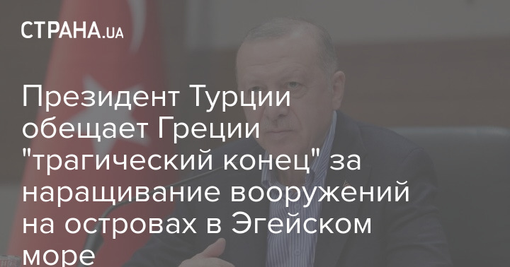Президент Турции Реджеп Тайип Эрдоган пообещал Греции "трагический конец", если она продолжит наращивать вооружения на островах в Эгейском море.