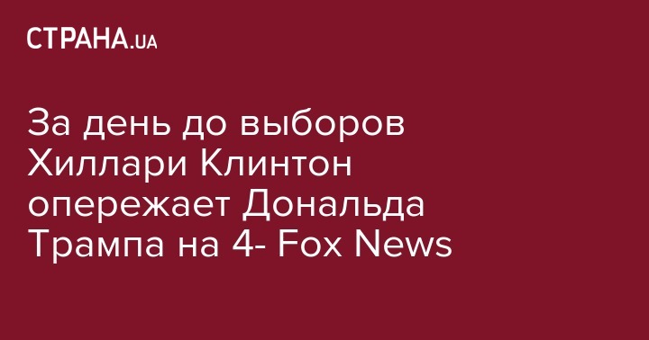 За день до выборов Хиллари Клинтон опережает Дональда Трампа на 4% - Fox News