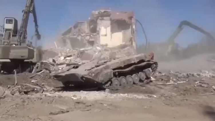 Появилось видео, как оккупанты разбирают завалы и сносят разрушенные дома в Мариуполе
