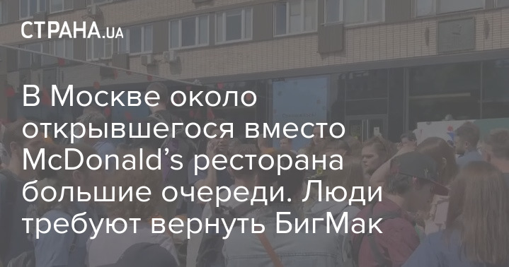 В Москве около открывшегося вместо покинувшего российский рынок McDonald’s ресторана новой сети "Вкусно и точка" собралась гигантская очередь. В толпе желающих попасть в заведения проходят стихийные акции протеста.