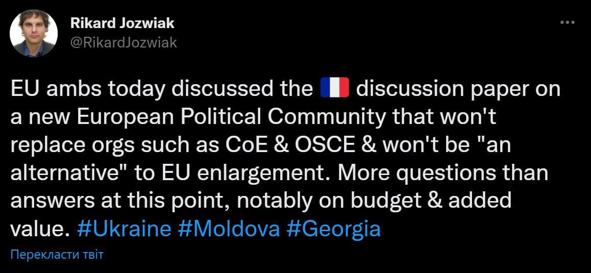 Идея о создании нового сообщества уже обсуждалась публично и в Украине энтузиазма не вызвала, так как есть подозрение, что членство в нем хотят предложить Киеву как альтернативу вступлению в ЕС.