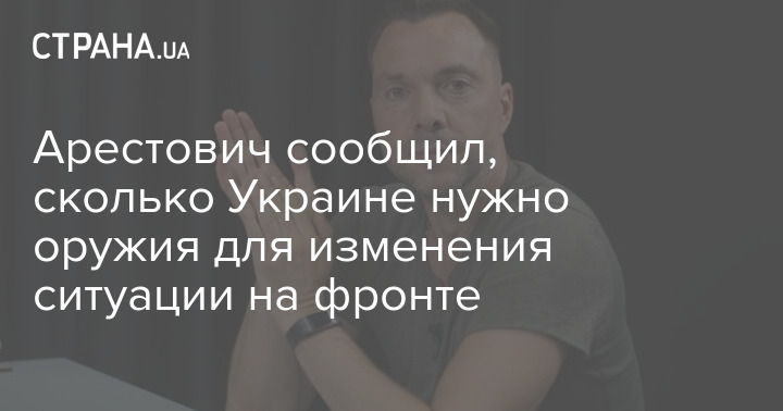 По мнению Арестовича, для серьезного изменения ситуации на фронте минимальная потребность ВСУ составляет (в дополнение к существующему вооружению): 200 гаубиц, 60 РСЗО, 100 танков, 400 единиц бронетехники, 200 дронов.