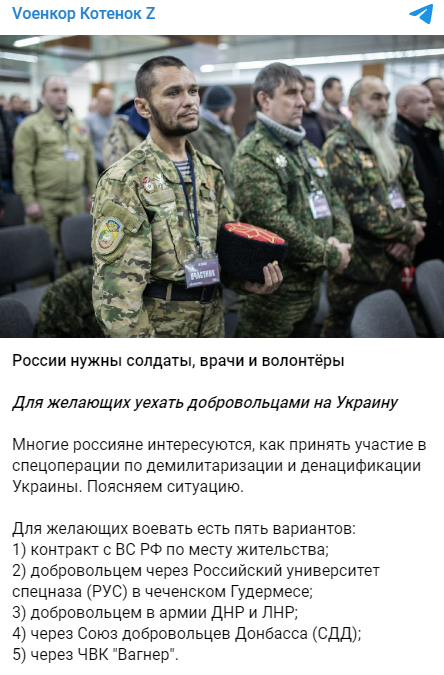 Российские военные телеграм-каналы описывают пять способов принять участие в "спецоперации":