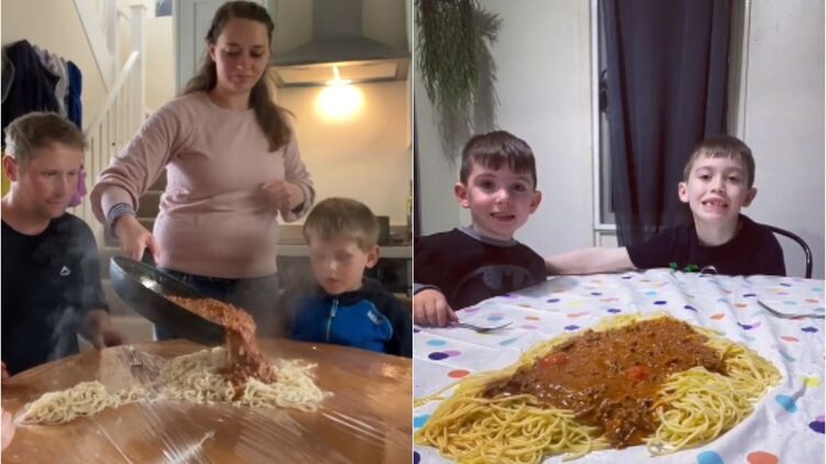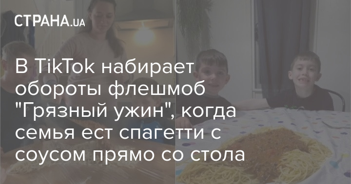 В социальной сети ТикТок, где запретили пользователям из России выкладывать ролики, получает распространение флешмоб "Грязный ужин" (Messy Dinner). Его суть - хозяйка вываливает на стол большую порцию спагетти, поливает это соусом, и вся семья поедает это непосредственно со стола.