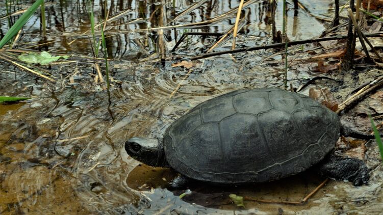 Чернобыльский радиационно-экологический биосферный заповедник показал фото единственной представительницы рода болотных черепах в фауне Украины. Это пресноводная европейская болотная черепаха.