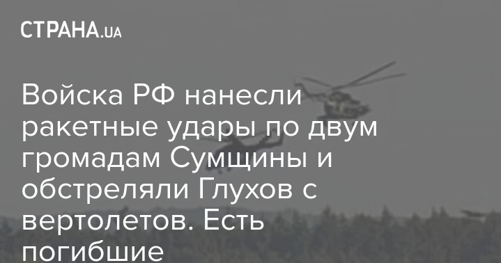Войска РФ нанесли ракетные удары по двум громадам Сумщины и обстреляли Глухов с вертолетов. Есть погибшие