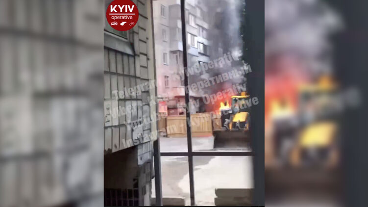В центре Киева прогремел взрыв, горит автомобиль. Видео