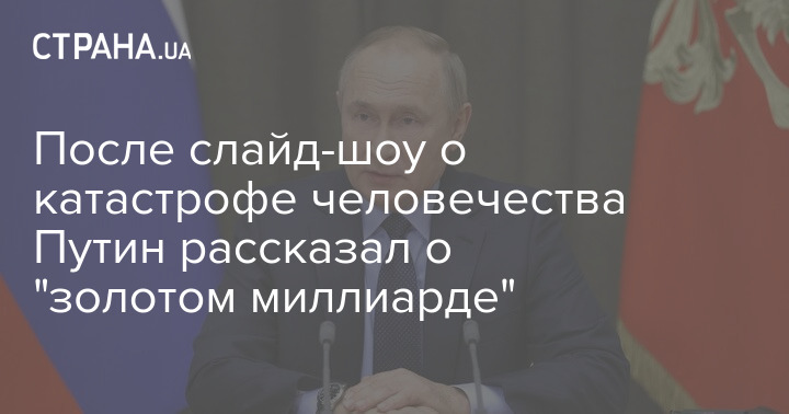 Отметим, что перед выступлением Путина показали слайд-шоу о том, что человечество движется к катастрофе, но Россия готова спасти мир.