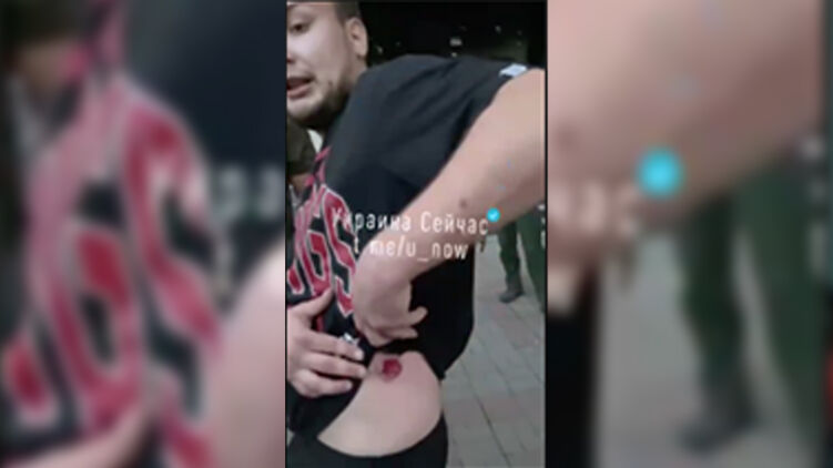 На видео видно, как стрелка задерживают правоохранители, вокруг суетится много зрителей, девушка задержанного кричит на пострадавшего, что "ты сам его п*здил", а пострадавший показывает на камеру ранение в живот от выстрелов.