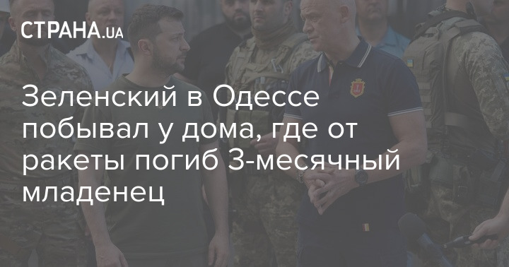 Зеленский в Одессе побывал у дома, где от ракеты погиб 3-месячный младенец