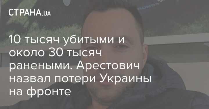 Советник главы Офиса президента Алексей Арестович заявляет, что украинская армия с начала войны потеряла около 10 тысяч убитыми и около 30 тысяч раненными.