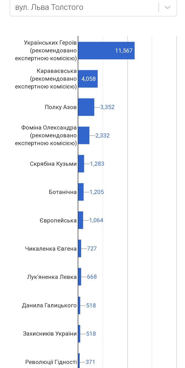Улицу Льва Толстого могут переименовать в улицу Украинских героев, как и рекомендовали эксперты.