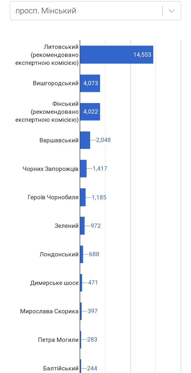 Проспект Минский на Оболони теперь может стать Литовским. Такой вариант набрал больше всего голосов.