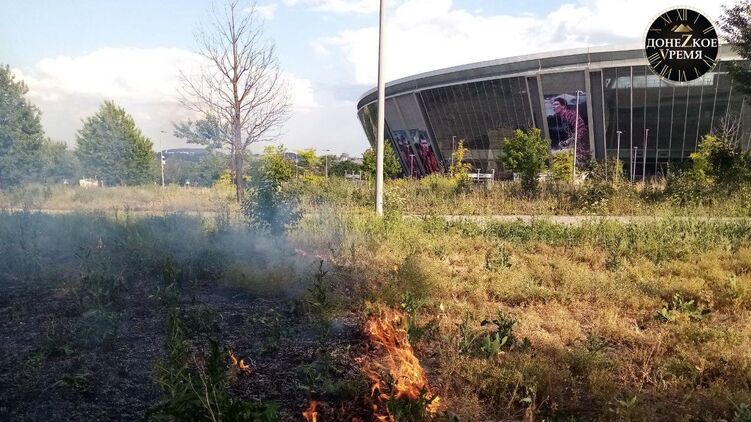 Сегодня, 21 июня, под обстрел попал парк вокруг стадиона "Донбасс Арена" в Донецке. Сам стадион цел. Донецкие паблики публикуют фото "Донбасс Арены" в дыму.