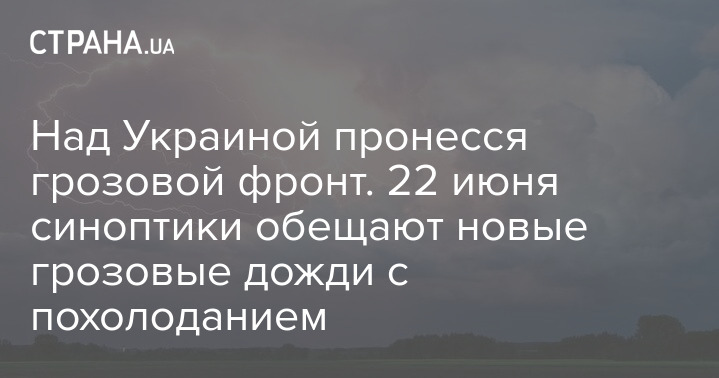 22 июня в стране будут идти кратковременные дожди, местами грозы, только на Закарпатье и в Карпатах ожидается без осадков. Ветер западный, северо-западный, 7-12 м/с, в западных, южных и большинстве центральных областей порывы 15-20 м/с. Температура ночью +9...+14°, на юге и востоке страны до +18°, днем +22...+27°, в большинстве центральных областей (Житомирской, Киевской и Хмельницкой областях) +16...+21°, на высокогорье Карпат ночью +4...+9°, днем +11...+16°.
