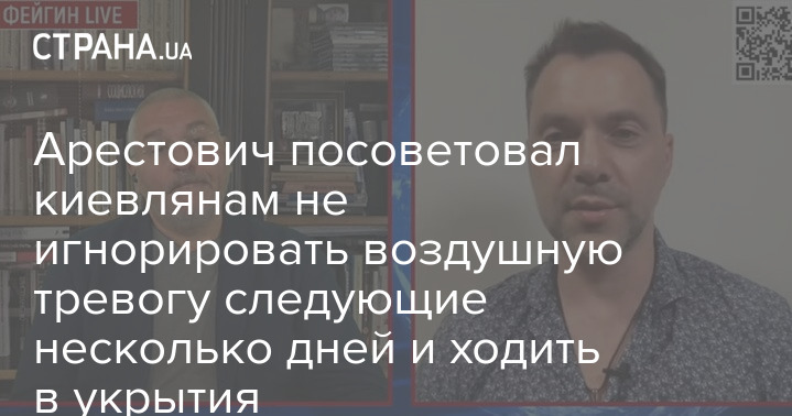 Советник главы Офиса президента Алексей Арестович советует киевлянам несколько следующих дней ходить в укрытия во время тревоги