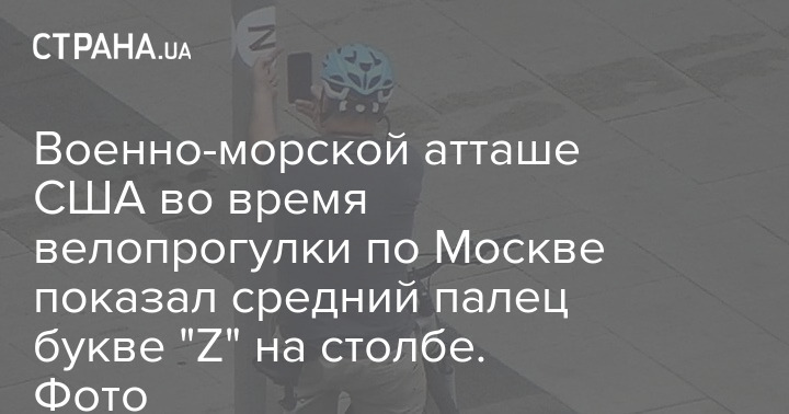 Военно-морской атташе США во время велопрогулки по Москве показал средний палец букве "Z" на столбе. Фото