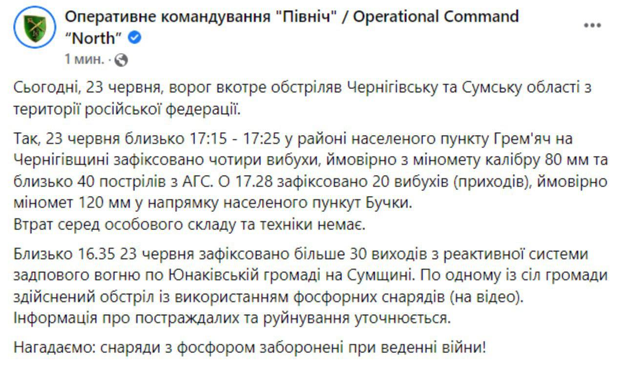 08:00 Сводка украинского Генштаба на утро 23 июня. Главное:
