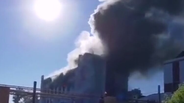 Над цехом поднимаются густые клубы дыма. Скриншот из видео