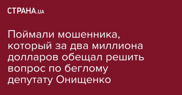Юрци Луценко рассказал, что  в ходе специальной операции ГПУ совместно с НАБУ И САП задержали при получении $1 млн мошенника, который за вдвое большую сумму обещал способствовать прекращению уголовного преследования находящегося в розыске народного депутата Украины Александра Онищенко, путем своего якобы влияния на руководителя Специальной антикоррупционной прокуратуры (САП) Назара Холодницкого.