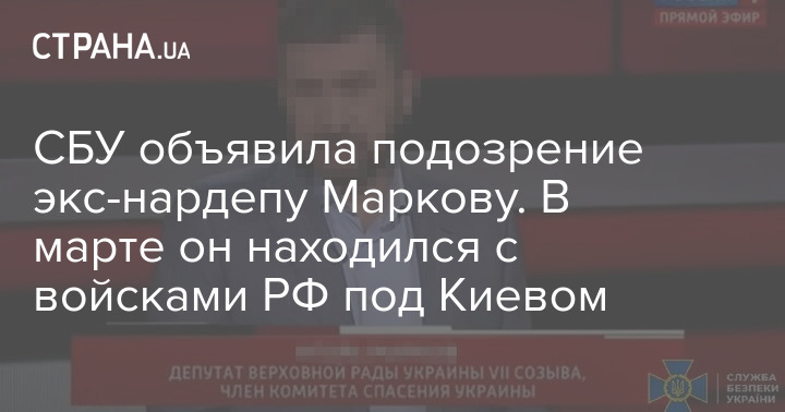 Экс-нардепу "Партии Регионов" Игорю Маркову объявили о подозрении в коллаборационизме. Маркова подозревают в том, что "он был одним из рупоров российской пропаганды" и поддержал вторжение в Украину. В марте этого года он находился на временно оккупированной территории Киевской области вместе с войсками Российской Федерации.