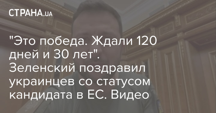 Президент Владимир Зеленский записал видеообращение по поводу официального предоставления Украине статуса кандидата в члены Евросоюза.