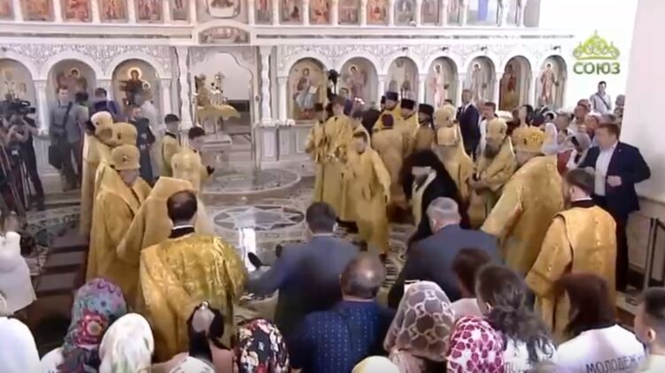 Патриарх Кирилл упал в церкви. Скриншот из видео
