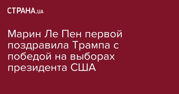 "Поздравляю нового президента США Дональда Трампа и народ США, свободный народ!", - написала Ле Пен.