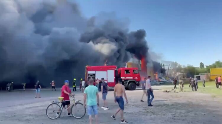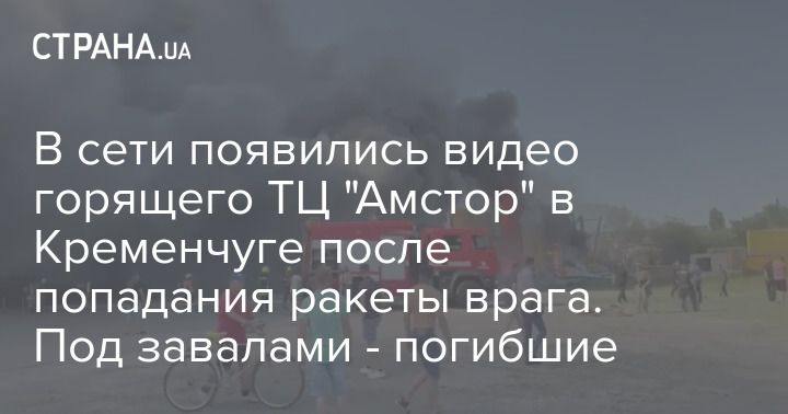В сети появились видео горящего ТЦ "Амстор" в Кременчуге после попадания ракеты врага. Под завалами - погибшие