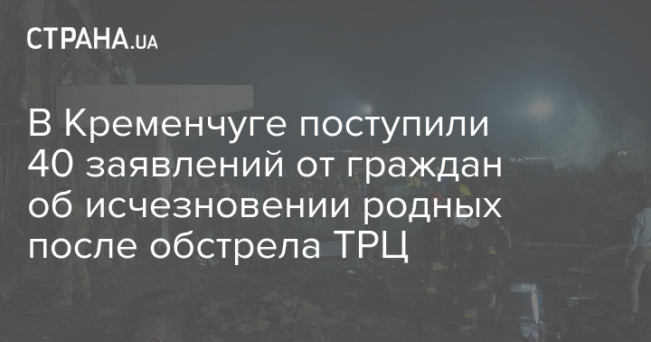 На данный момент поступило более 40 заявлений от граждан об исчезновении их родных после обстрела ТРЦ в Кременчуге. Также известно о гибели 15 человек от удара ракеты по ТРЦ.