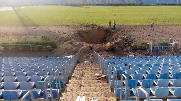 Одна из ракет оккупантов попала по новому стадиону в Николаеве. Фото: Александр Сенкевич